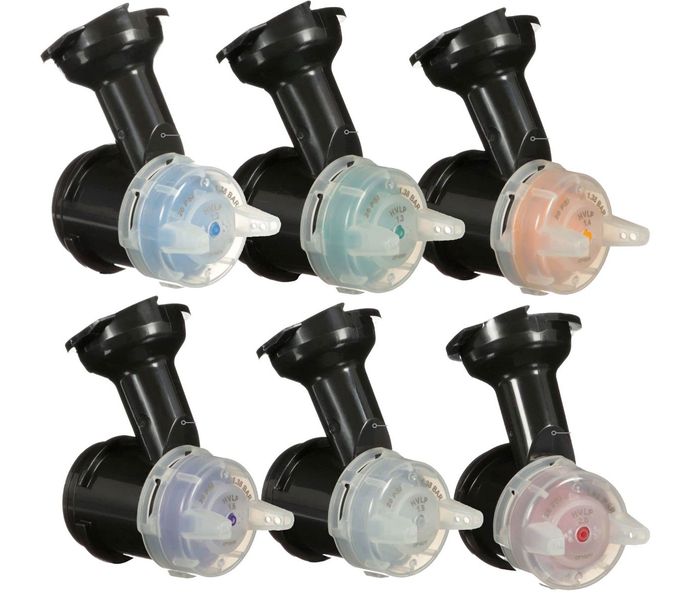 Die separaten 3M-Sprayköpfe sind in 6 verschiedenen Düsenöffnungen erhältlich und zu 5 Stück verpackt. Wählen Sie je nach Lack, Farbe oder Beschichtung die gewünschte und passende Düsenöffnung des Sprühkopfes.