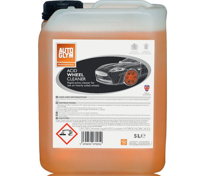 AUTOGLYM Acid Wheel Cleaner ist ein leistungsstarker saurer Felgenreiniger zur Entfernung von Korrosion, Straßenschmutz und Bremsstaub. Der Radreiniger ist für Chrom-, lackierte Stahl- und Aluminiumfelgen geeignet.