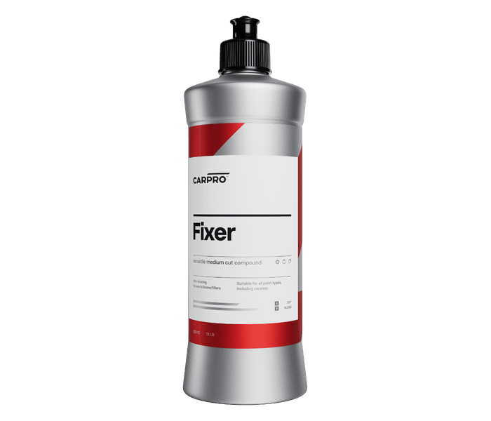 CarPro Fixer Medium Cut Compound wurde entwickelt, um Kratzer, Wirbel und Oxidation zu entfernen. Konzentriertes Spezial-Poliergranulat entfernt Schleifkratzer bis P1500 und hinterlässt brillanten Glanz mit minimalem bis gar keinem Schleier.