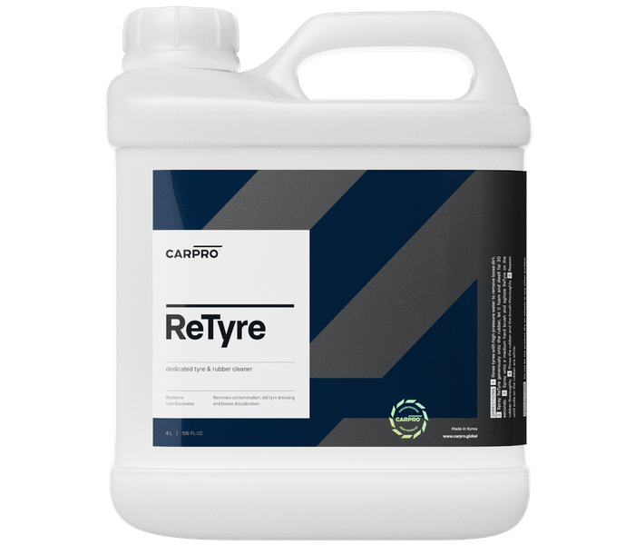 CarPro ReTyre ist ein hochwertiger Reifenreiniger, der tief in die Poren von Gummi eindringt. Der Gummireiniger von CarPro entfernt mühelos angesammelten Reifenstaub, braune Ablagerungen und Straßenverschmutzungen. Der Autoreifenreiniger sorgt dafür, dass Reifenpflege oder -beschichtungen besser auf der Oberfläche haften.