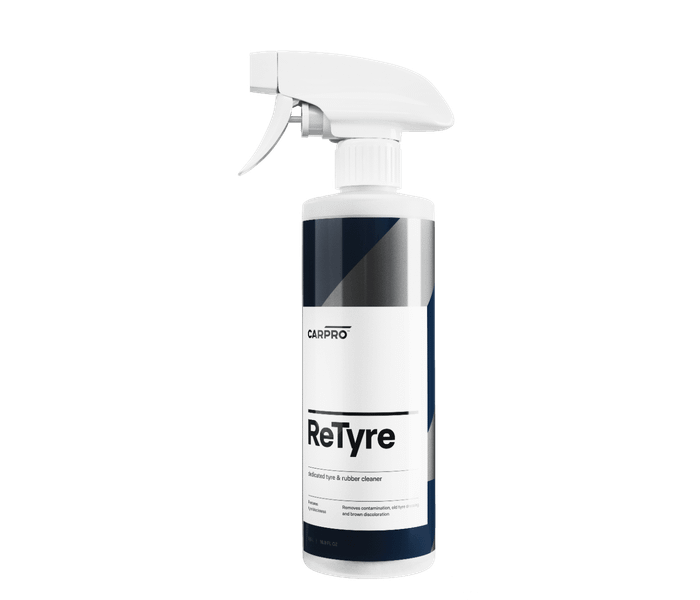 CarPro ReTyre ist ein hochwertiger Reifenreiniger, der tief in die Poren von Gummi eindringt. Der Gummireiniger von CarPro entfernt mühelos angesammelten Reifenstaub, braune Ablagerungen und Straßenverschmutzungen. Der Autoreifenreiniger sorgt dafür, dass Reifenpflege oder -beschichtungen besser auf der Oberfläche haften.