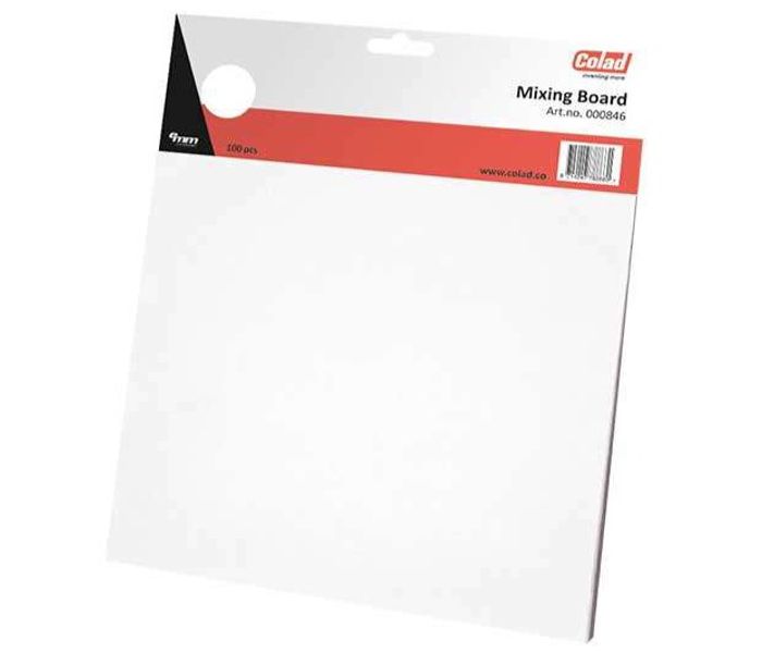 COLAD Mixing Board ist ein hochwertiges Mischbrett mit beschichtetem Papier, das die Absorption von Harzen und Lösungsmitteln verhindert. Das Anmischen auf der Tafel ist ein praktisch zur Vorbereitung der Spachtel. Praktische Hilfe bei der Zubereitung der Spachtelmasse, die den Zeitaufwand für die Reinigung reduziert.