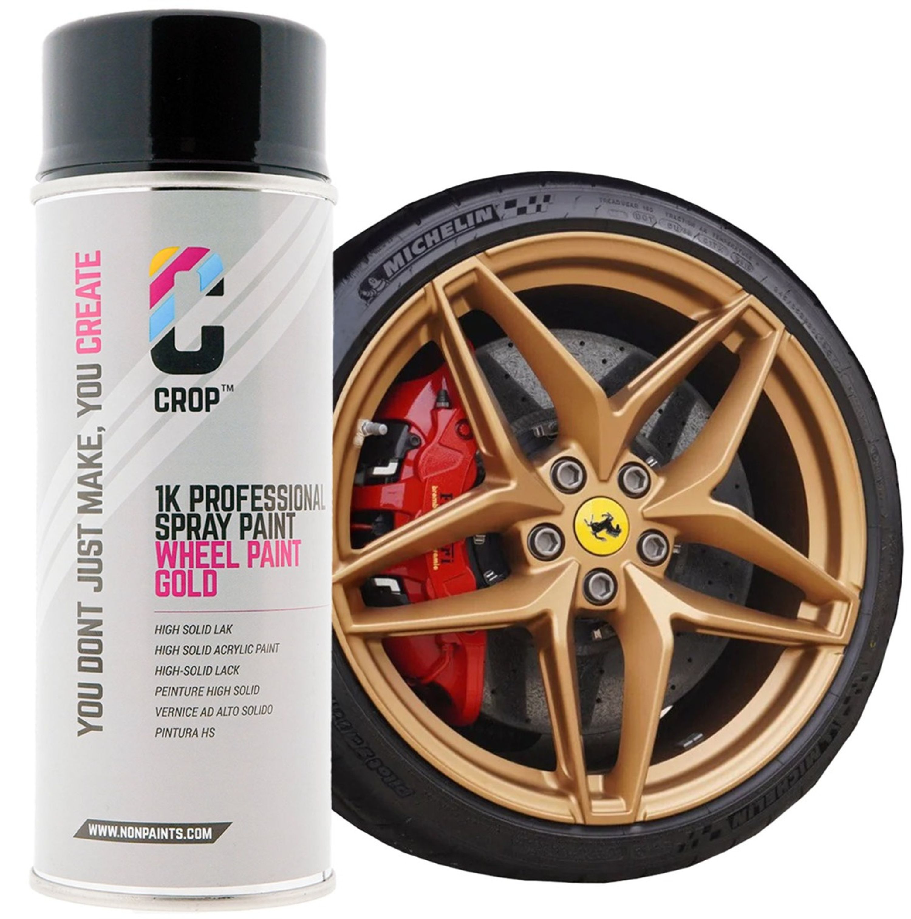 CROP Felgenfarbe GOLD Spraydosen Set besteht aus vier 400-ml-Sprays, die speziell für die professionelle Lackierung eines kompletten Satzes von 4 Felgen entwickelt wurden. Die goldene Metallic-Farbe ist identisch mit der Lackierung von Sportfelgen, die bei vielen Supersportwagen wie Ferrari und Lamborghini verwendet werden. So erhalten Ihre Felgen ein glattes, gleichmäßiges und einzigartiges Finish, genau wie neu. Dank der hochwertigen Sprühdosen und der feinen Zerstäubung lässt sich der Lack leicht selbst auftragen, ohne dass Sie eine professionelle Sprühanlage benötigen.