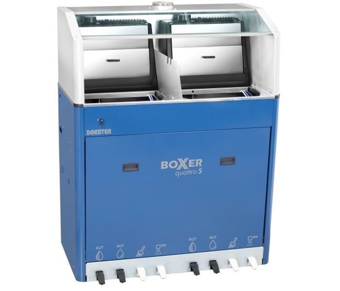 DRESTER Boxer DB44S Quattro 4 in 1 Kombireiniger und Spülmaschine geeignet zur Verwendung von Solventen. Dieser Reiniger hat 4 Arbeitsstationen woran unabhängig und gleichzeitig gearbeitet werden kann.