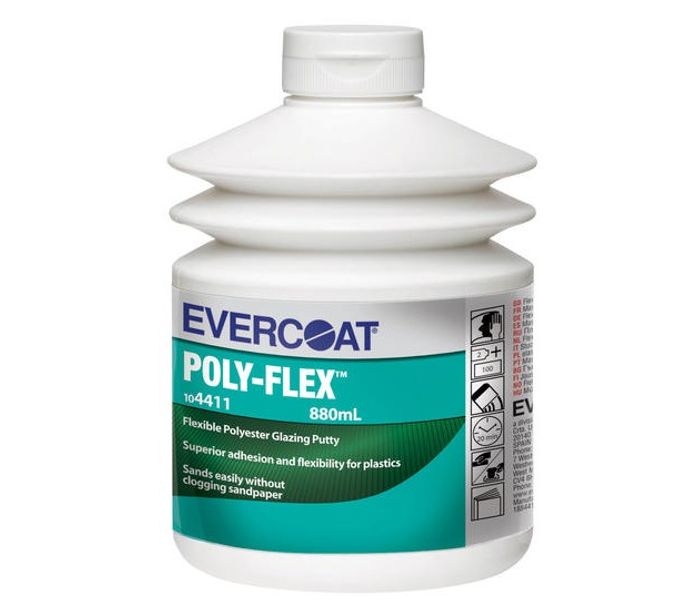 Der Poly-Flex-Füller von EVERCOAT ist bekannt um seine extreme Flexibilität. Dieser Zweikomponentenfüller kann bis zu 80% gebogen werden, ohne zu brechen oder zu reißen. Dies macht diesen Kunststofffüller ideal für flexible Kunststoffstoßstangen.