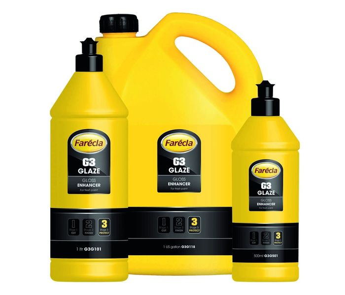FARECLA G3 Glaze Gloss Enhancer Versiegelung ist ein schützendes Produkt mit ausgezeichneter Füllkapazität für kleine Kratzer und Streifen. Er lässt nicht nur zusätzlichen Glanz und eine Schutzschicht auf der Oberfäche zurück, sondern bietet eine wasserabweisende, aber luftdurchlässige und dauerhafte Beschichtung bei allen Lackierungen. Die Glanz Versiegelung ist in verschiedenen Ausführungen erhältlich: 500ml, 1 Liter und 3,8 Liter Gebinde.