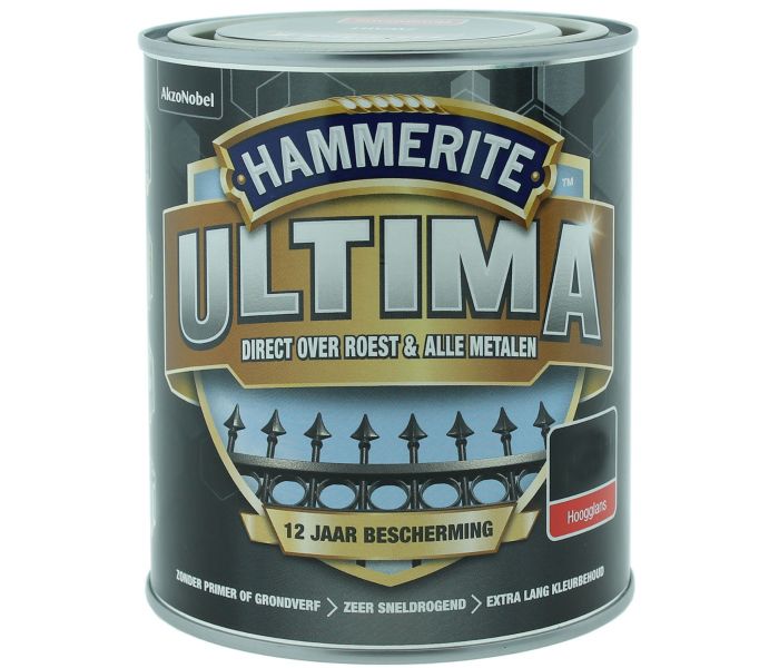 Hammerite Ultima Metalllack zum hochwertigen Lackieren von Metall mit Hochglanz-Finish. Die glänzende Hammerite Ultima Metallfarbe kann ohne Grundierung über alle Metallarten gestrichen werden. Hammerite Ultima ist die beste Metallfarbe, die bis zu 12 Jahre Schutz bietet, schnell trocknet und dank Color Lock Technologie extra lange ihre schöne Farbe behält. Diese Hammerite Ultima Metallfarbe ist in 5 tollen Farben mit Hochglanz-Finish erhältlich.