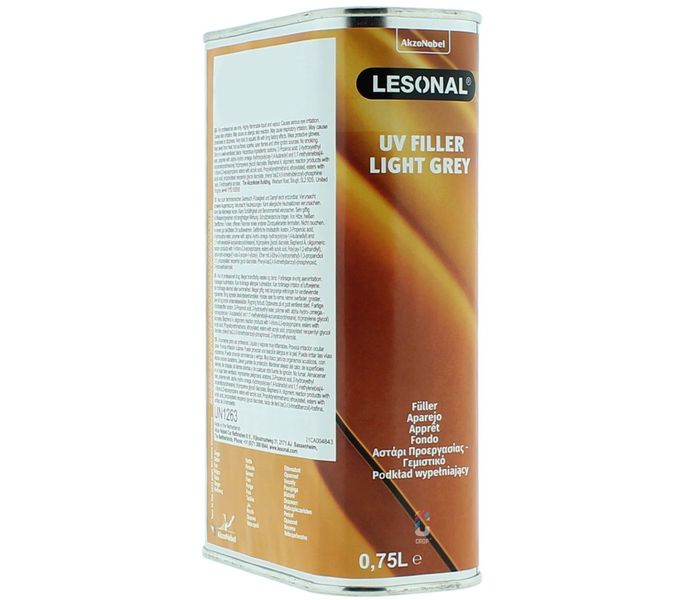 LESONAL UV Filler in der Farbe Hellgrau ist eine Grundierung, die durch UV-A-Licht trocknet. Dadurch trocknet dieser LESONAL UV Primer Filler in 2 Minuten. Das Einzigartige an der UV-Spachtelmasse von LESONAL ist, dass sie auf kritischen Untergründen keine Randspuren hinterlässt. Auch ein Entfetten vor dem Schleifen der Grundierung ist nicht erforderlich.