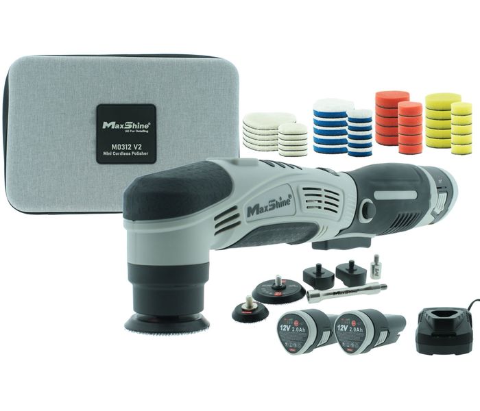 MaxShine Nano Akku Poliermaschine 12 Volt ist der beste Polierer für das Polieren der kritischsten und schwer zugänglichen Stellen. Diese Mini-Nano-Poliermaschine mit Akku wird in einem kompletten Set geliefert, das alles enthält, was Sie für das rotierende und exzentrische Polieren benötigen. Somit ist dieser Nano-Polierer ideal für das Polieren von Felgen, Scheinwerfern, Bremssätteln, Logos, Spiegelkappen, Spoilern, Seitenschwellern, einem Auspuff und um ein Nummernschild herum. Das MaxShine Nano Mini-Poliererset wird mit 2x 12-Volt-Akku, Schnellladegerät, 40 Polierpads und diversem Zubehör in einer hochwertigen MaxShine Aufbewahrungstasche geliefert. Sie benötigen nur noch Ihre Lieblingpolitur.