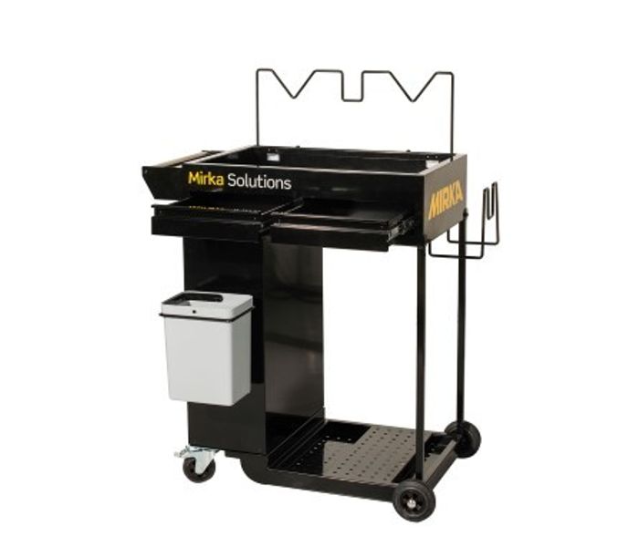 Mirka Solution Trolley ist ein mobiler Arbeitsplatz und bietet flexible und praktische Lösungen für den professionellen Anwender. Der Mirka Trolley ist bei der Vorbereitung von Lackierarbeiten besonders geeignet, kurze Wege am Arbeitsplatz und optimaler Zugang zu Materialien und Werkzeugen erspart viel Zeit.