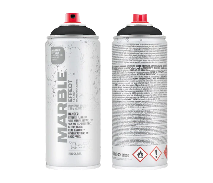 Montana Marmor Lack SCHWARZ Spray ist eine Sprühfarbe mit dem Effekt von Marmorstein. Diese Sprühfarbe in Marmoroptik hat eine hohe Deckkraft und haftet auf Stein, Keramik, Metall, Glas, Holz, Kunststoff, Karton, Papier, Acryllack und mehr. Mit der Montana Marmor Lackspraydose können Sie den unterschiedlichsten Gegenständen einen Marmoreffekt verleihen. Ideal für einzigartige Kreationen als Heimwerker im Innen- und Außenbereich.