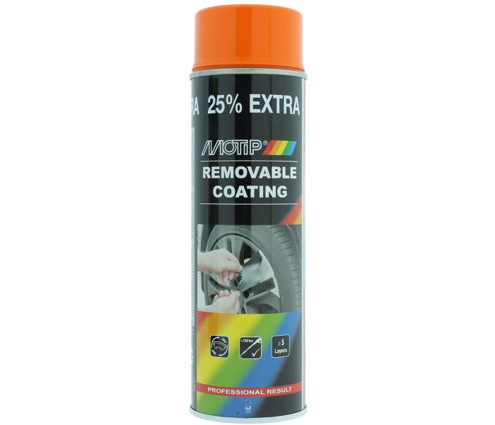 MoTip SprayPlast Hochglanz Orange ist ein ablösbarer Lack, den Sie aufsprühen können, um Autoteilen, Gegenständen oder anderen Oberflächen vorübergehend eine neue Farbe zu geben. Diese Spraydose MoTip Removable Coating ist auch sehr gut geeignet, um Ihre Felgen selbst mit Plasti Spray in der Farbe Glanzorange zu dippen. Möchten Sie wieder zur Originaloberfläche zurückkehren? Dann ist dieses MoTip SprayPlast gloss orange leicht zu entfernen.