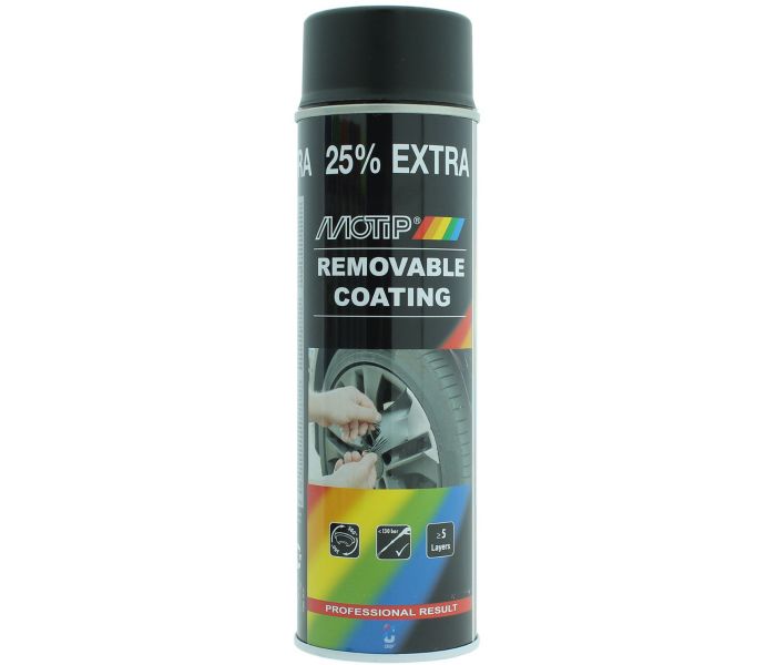 MoTip SprayPlast mattschwarz ist ein entfernbarer Lack, den Sie aufsprühen können, um Autoteilen, Gegenständen oder anderen Oberflächen vorübergehend eine neue Farbe zu verleihen. Diese MoTip-Sprühfolie eignet sich auch sehr gut zum Dippen Ihrer Felgen mit Sprühfolie in der Farbe Mattschwarz. Das SprayPlast Mattschwarz ist vergleichbar mit der Farbe RAL9005 Tiefschwarz und trocknet schön matt. Möchten Sie zur ursprünglichen Oberfläche zurück? Dann lässt sich dieses MoTip SprayPlast mattschwarz leicht entfernen.