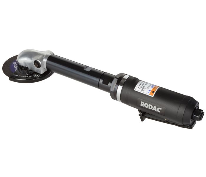 RODAC RC261 Langhals Winkelschleifer ist ein extra lange pneumatische Winkelschleifer für Ø 100 mm Schleifteller und geeignet zur Bearbeitung schwer erreichbarer Positionen, wie z.B. Auspuffanlagen, Kurbelgehäusen usw. Diese extra lange Winkelschleifer hat ein einstellbarem Kopf.