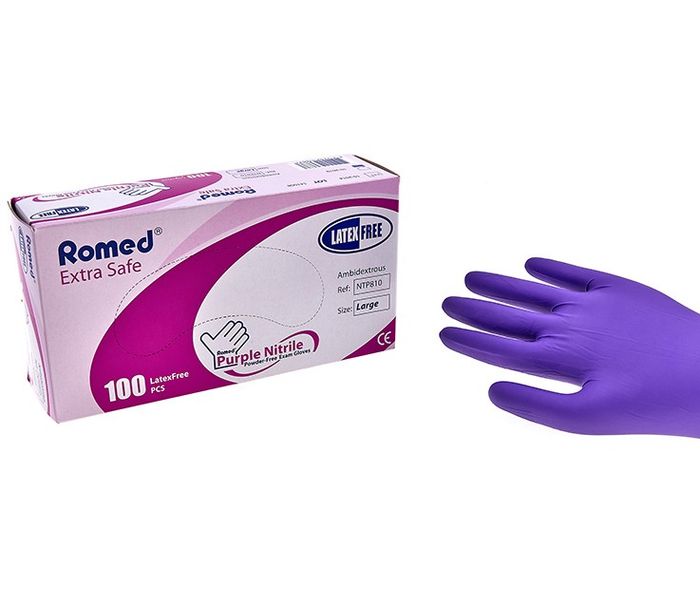 Romed Nitrile Handschuhe in der Farbe Lila sind bekannt für ihre gute Passform. Diese Handschuhe passen sich dank der perfekten Passform vollständig Ihrer Hand an und sind vollständig puder- und allergiefrei. Dadurch haben diese Handschuhe einen hohen Tragekomfort und bieten ein optimales Gefühl und Griff beim Arbeiten mit den Händen.