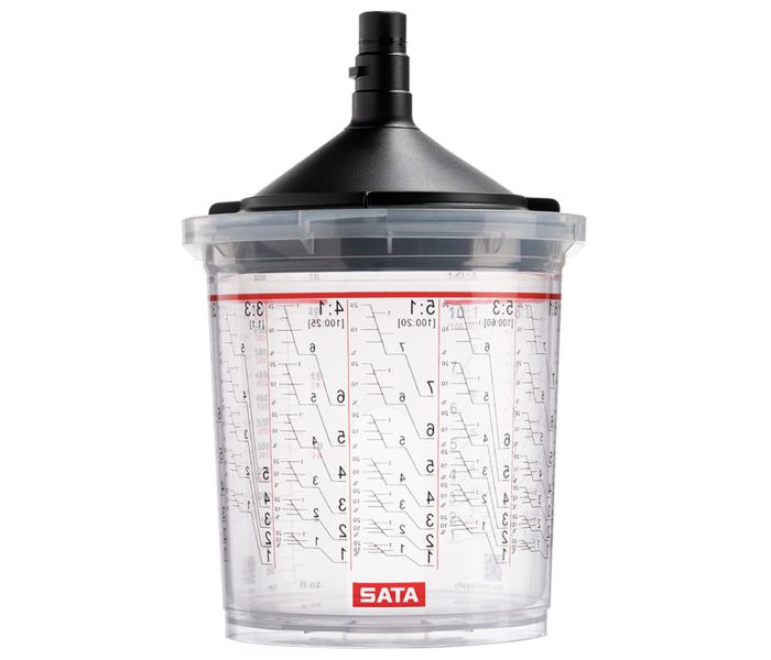 SATA Liner Cup System 650 ml mit 125 Mikron Sieben ist ein komplettes Set bestehend aus einem klar transparenten Außenbecher, 50 Innenbeuteln, 50 Verschlusskappen und 50 Deckeln mit 125 Mikron Lacksieben. Der SATA LCS Außenbecher 650 ml ist wiederverwendbar und mit Mischungsverhältnissen für die exakte Zubereitung von Lacken, Klarlacken, Primern oder anderen Lackarten bedruckt. Durch das Einsetzen des 125 Mikron Lacksiebs in den SATA LCS-Deckel wird der Lack beim Sprühen sofort gefiltert. Das garantiert Ihnen einen 100%ig sauberen und staubfreien Lack oder Farbe.