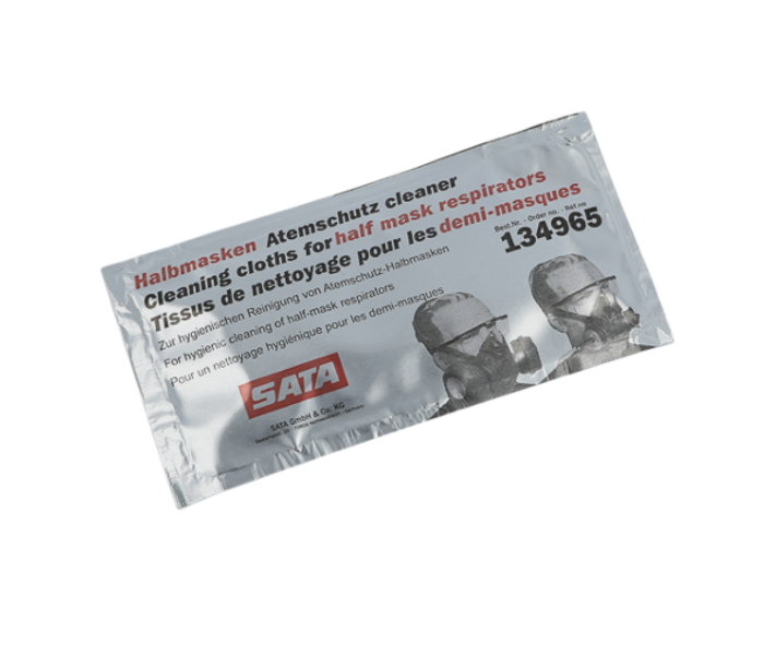 Original SATA Halbmaskenreiniger sind feuchte Reinigungstücher, die speziell für die schnelle und hygienische Reinigung von Atemschutzmasken entwickelt wurden.