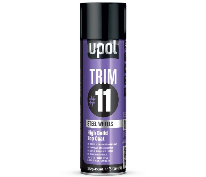 U-POL Steelwheel Wheel Paint Sprühdose in der Farbe gun metal grey ist ein hochwertiger Decklack mit hoher Deckkraft. Dieser U-POL #11 TRIM Aerosol Felgenlack anthrazitgrau mit feinem Metallicanteil enthält schnell trocknenden Lack, der in ein bis zwei Schichten deckt. So können Sie Autoteile wie Spiegel, Stoßstangen, Logos, Fensterleisten und Felgen schnell in Gussgrau lackieren. Darüber hinaus können Sie mit U-POL grauer Sprühfarbe auch andere Oberflächen, Objekte oder Gegenstände besprühen.