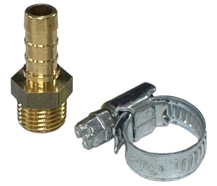 Das ZECA-Set enthält ein Anschlussstück und eine Schlauchklemme, mit denen Sie den Aufroller an einen 8 mm Luftschlauch anschließen können. Dieses Set stellt eine sichere Verbindung zwischen der Trommel und dem Luftschlauch her. Das Anschlussstück sorgt für eine korrekte Verbindung, während die Schelle den Schlauch fest in Position hält. Dieses Set ist für die ordnungsgemäße Funktion einer ZECA-Haspel unerlässlich.