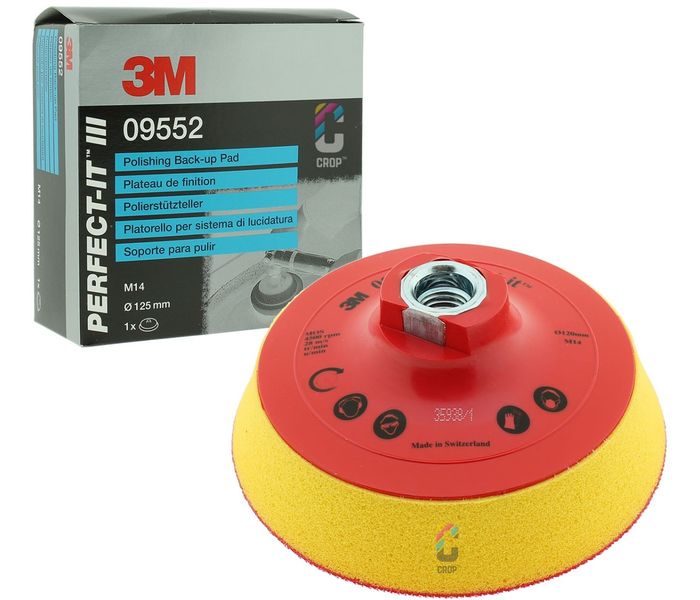 3M 06552 Steunschijf heeft een diameter van 125mm en M14 schroefdraad om te gebruiken als pad op de 3M 64392 polijstmachine. Deze 3M steunpad is voorzien van sterk velcro waardoor hier alle poets- en polijstschijven met klittenband op gebruikt kunnen worden.