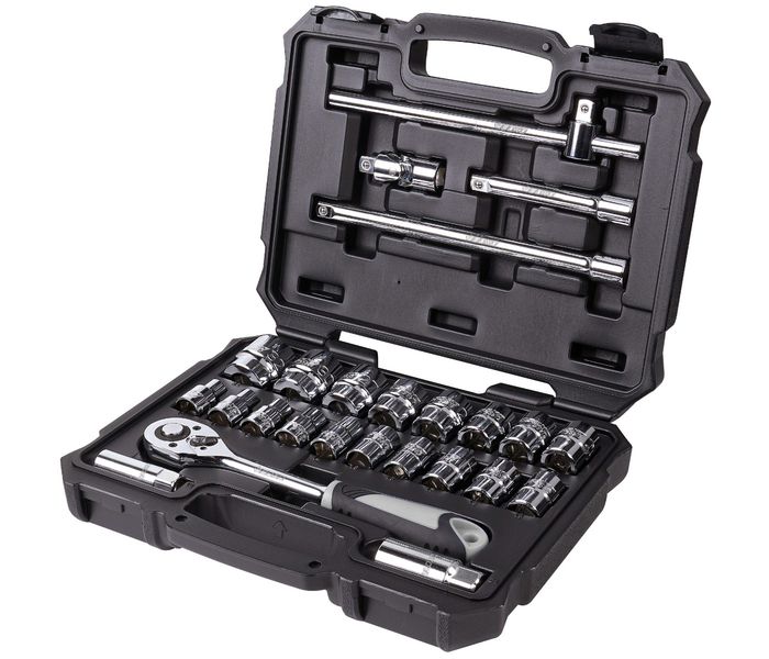 BOXO Socket Set 1/2" is a 25-piece set with professional sockets, ratchets and other hand tools. With this professional socket set from BOXO, you as a demanding craftsman or woman can handle any job. Thanks to the complete set, you will always have the right cap, socket wrench and hand tools at hand when doing jobs.