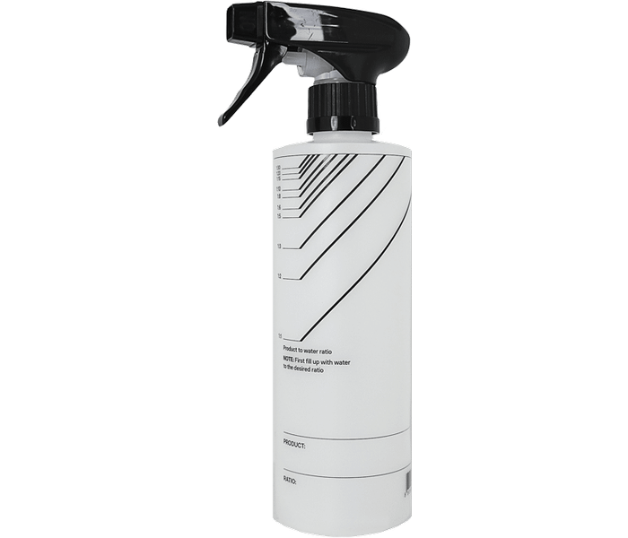 Many CarPro products need to be diluted with water. With Dilute Empty Bottle from CarPro, you no longer have to wonder if you diluted a detailing product properly. The uniquely designed mixing bottle comes with a pre-printed mixing ratio and scale. All you have to do is fill the water to the desired dilution ratio and then refill with product. Each spray bottle comes with a chemical-resistant sprayer.