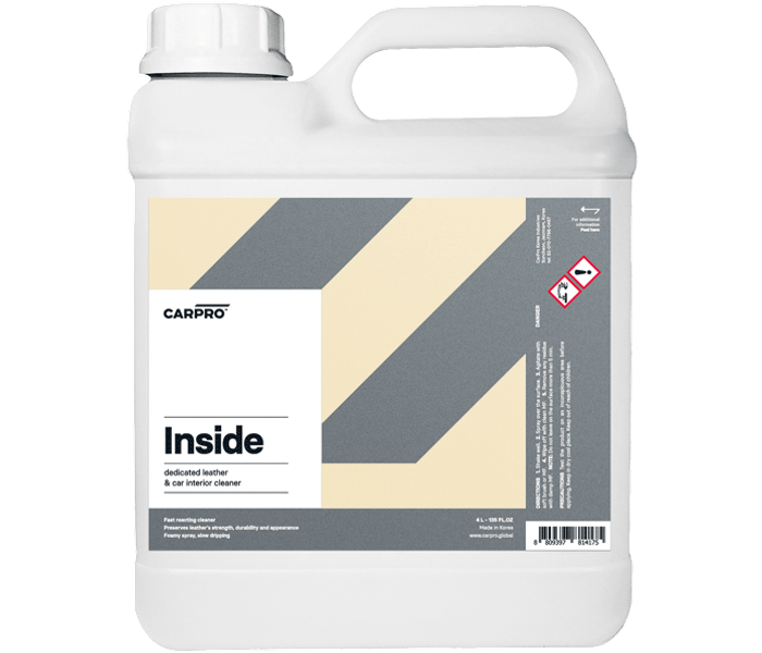 CarPro Inside Leather and Interior Cleaner is a multi-purpose interior cleaner with advanced organic cleaners for both gentle and powerful cleaning and a blend of surfactants that promote foaming. CarPro Inside Leather & Interior Cleaner removes dirt, sweat, accumulated body oils, dried lotions and all other types of soiling on all interior surfaces!
