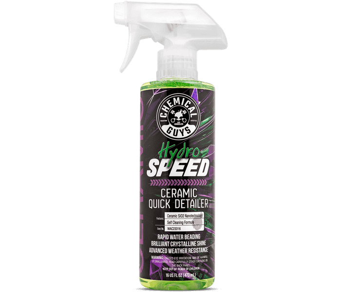 Chemical Guys HydroSpeed Ceramic Quick Detailer is a real ceramic detailing spray with SiO2 technology for a super shine and dazzling paint reflection. The ceramic quick detailer spray removes surface dirt, stains and adds a protective layer to car paint. Sealing your car with Chemical Guys HydroSpeed gives paint a dirt and water repellent effect.