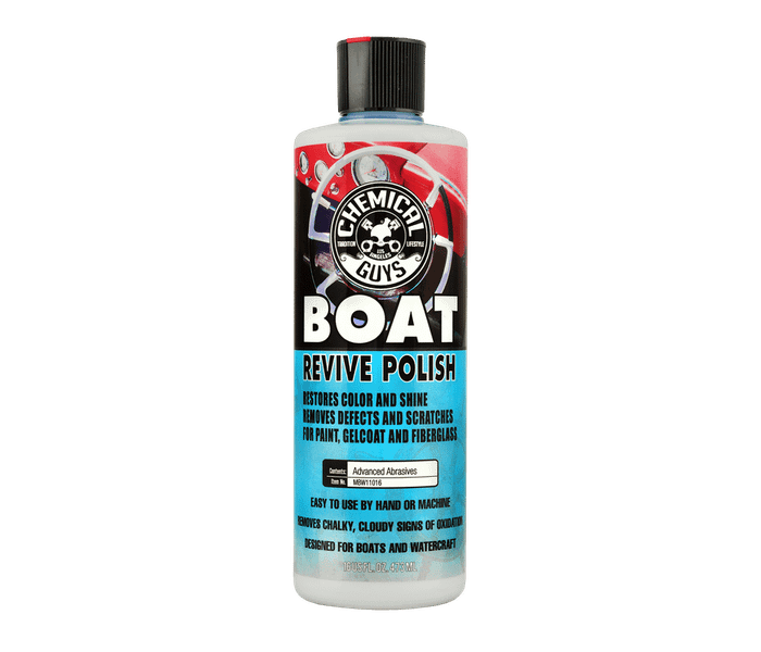 Chemical Guys Marine Boat Revive Polish cuts through layers of defects, contamination and oxidation to restore and refine your watercrafts finish and restore a high gloss shine.