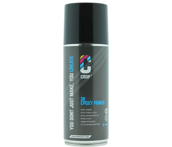 CROP 2K Epoxy Primer Black is a high-quality, two-component corrosion resistant sealer with excellent adhesion to metal, fibreglass and aluminum surfaces. 2K Epoxy primer spray paint improves adhesion of body fillers and resists moisture damage caused by water permeation. It is recoatable with all standard solvent or waterborne 1K and 2K paints.