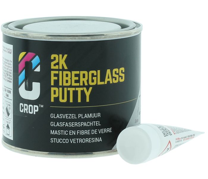 CROP Fiberglass Putty 125ml is a small jar of professional 2K polyester putty that is fiberglass reinforced. This makes the fiberglass putty flexible and highly resistant to rust, chemicals, water and moisture. You can apply CROP's fast-drying 2K fiberglass putty in several thick layers, allowing you to fill deep cracks, dents and holes. After the 2 component putty is dry, you can easily sand the putty smooth. Thanks to the mini 125ml jar of fiberglass putty, it is ideal for small jobs!