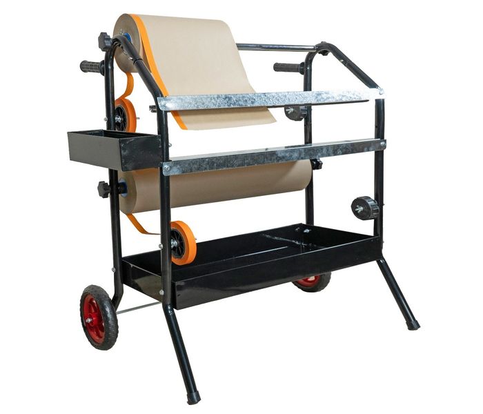 LARGE Masking Paper Dispenser for 90cm masking paper and tape from CROP is your best tool for quickly masking, masking, and covering a car or other surface. This mobile masking dispenser is mobile thanks to 2 large wheels and sturdy construction. The aprontaper offers space for 2 rolls of masking tape and masking paper up to 90cm. The multipurpose paper cart is powder coated black giving you a very professional look. Thanks to the high-quality sharpened blades, you get very sharp edges while tearing off your masking paper! On the side of this masking tool you have a storage tray so you always have your favorite tools and accessories at hand!