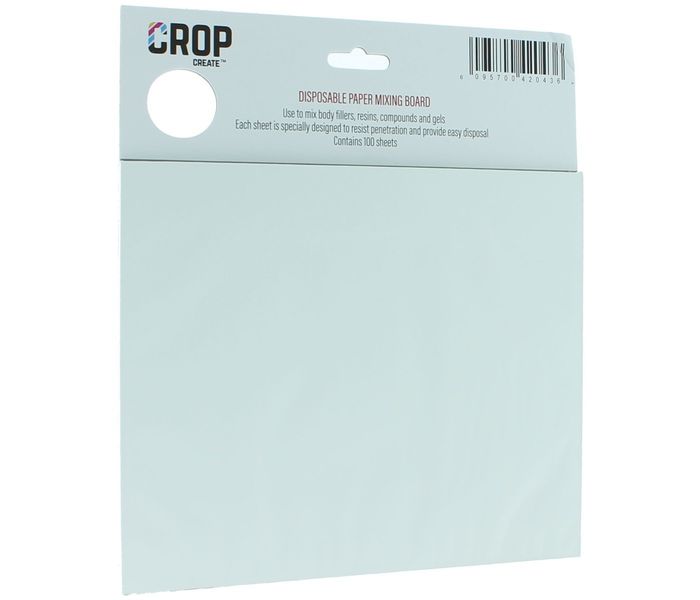 Mixing Board for Putty contains special paper for easy and clean mixing of 2K putty. This CROP putty mixing board is a handy attachment when creating all types of putty! By using this smooth mixing board for putty, you are able to mix even better and prevent air bubbles in the putty. This putty mixing board consists of treated non-absorbent paper that prevents you from sucking the resin and hardener into the board.