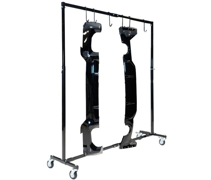 Because this CROP spray stand is black powder coated, the spray stand looks very luxurious. This allows the black rack to fit in any garage, workshop, spray booth or business. With this spray rack in powder coated black you create a look that is professional! Thanks to the high-quality finish, the black hanging rack remains rust-free, maintenance-free and looks great for a long time!