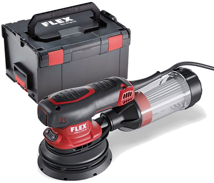 The FLEX ORE 2-125 with 125mm pad is a professional eccentric sander with brushless motor and speed control, delivered in a Systainer storage and transport case. This electric sander has a 125mm diameter backing pad to which velcro backed sanding discs are attached. The ORE 2-125 is also supplied with a Venturi cartridge filter for dust-free sanding, even without a vacuum.