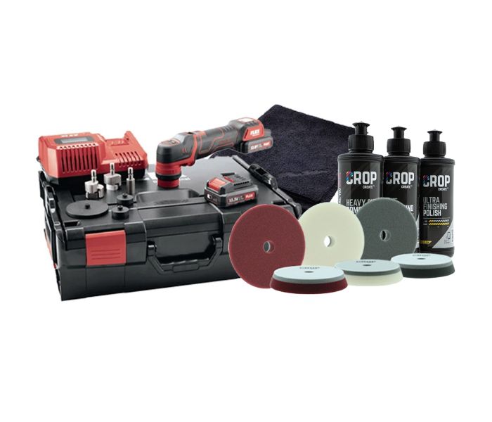 FLEX PXE 80 Nano Cordless Polisher Set is the Ultimate Car Detailing kit specially put together by CROP for the most demanding car detailer and enthusiast. This Car Detailing Polishing Kit includes the battery-powered FLEX PXE 80 mini polisher, 3 polishing compounds with 6 matching polishing pads that are perfectly matched to the polishing compounds and 3 Edgeless microfiber cloths. With this Ultimate Car Detailing FLEX PXE Nano Polisher Set you have everything you need to polish small parts on the car such as mirror caps, spoilers, door frames, rims, headlights, exhausts and more. Step up your polishing efforts while car detailing with this FLEX PXE Nano set!