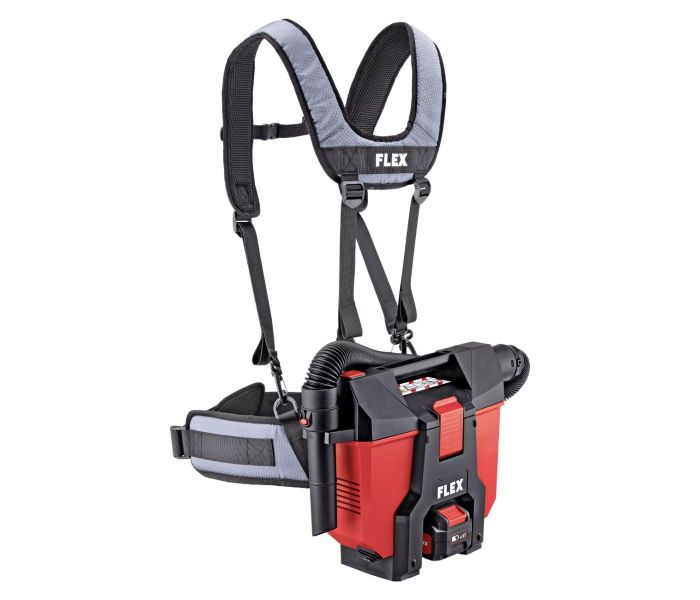 FLEX VC 2 L MC Hip Vacuum Cleaner on Battery is very compact and lightweight. Because the portable vacuum comes with a harness, you can easily carry it on your back leaving your hands free to work with. This FLEX cordless vacuum cleaner is equipped with a powerful turbine that provides high suction power. This allows you to use the FLEX VC 2 Hip vacuum cleaner with your sander, grinder or to vacuum your car.