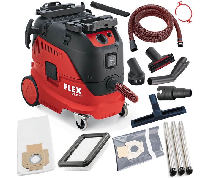 FLEX VCE 33 M AC-Kit Safety Vacuum Cleaner 1400 Watt with 30 litre container and automatic filter cleaning system with accessories and cleaning set Dust Class M
