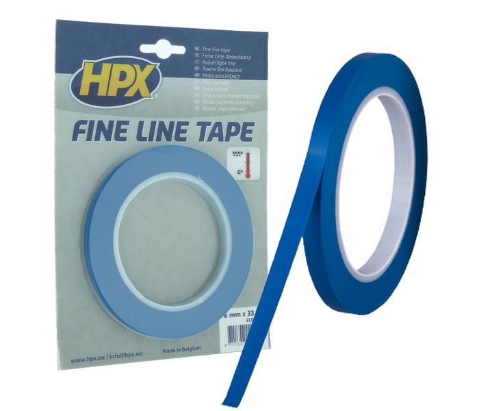 HPX Fine Line Tape 9mm on 33 meter roll for tight masking with sharp curves and edges. This 9mm vinyl tape is thin allowing you to use the fine line tape for critical applications. Despite its high adhesive strength, the HPX Fine Line Tape 9mm leaves no adhesive residue after removal.