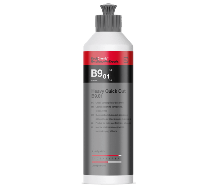 Koch Chemie B9.01 Heavy Quick Cut is a coarse polish that is particularly intended for cars that have recently been painted with car paint already sanded. This polishing compound contains the most abrasive power within the Koch Chemie range and is silicone-free.
