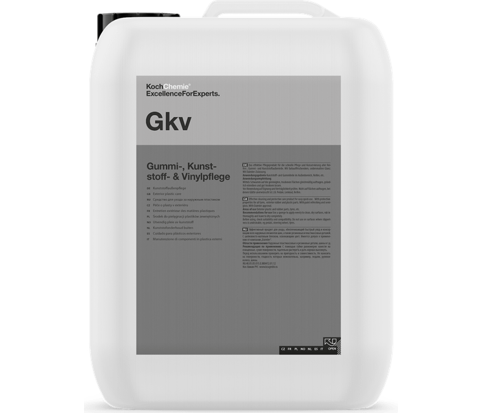 Without proper protection from bright UV light, plastic parts can fade over time. Koch Chemie Gkv infuses plastic parts with the proper protection. Plastic protector has a color-fresh, silk-matt shine.
