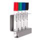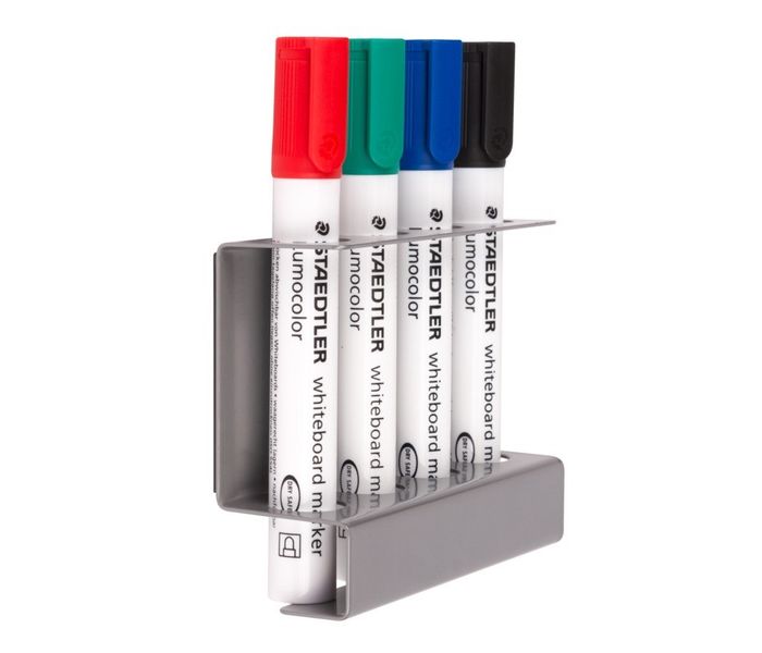 The magnetic holder offers space for four different markers with a diameter up to 18 mm. Thanks to the spacious compartments and the vertical, upright position, the pins can easily be taken out of the holder.