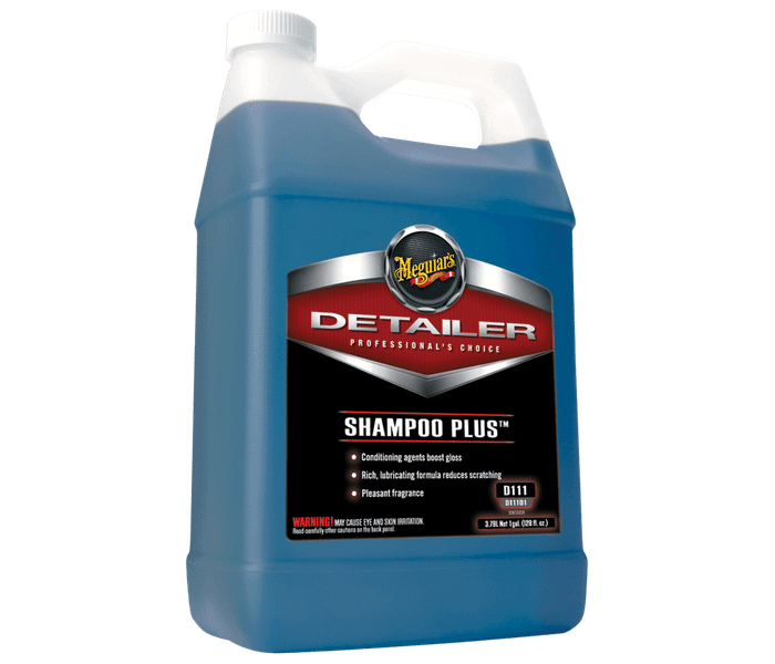 Meguiar's Detailer - Shampoo Plus does more than clean your vehicle; it protects and conditions it resulting in a superior shine. The foam it produces is extra rich in lubricating oils and conditioners to protect the paint from swirls and scratches caused during washing. The conditioners infuse the paint with moisture so that it looks vibrant, bright, and glossy.