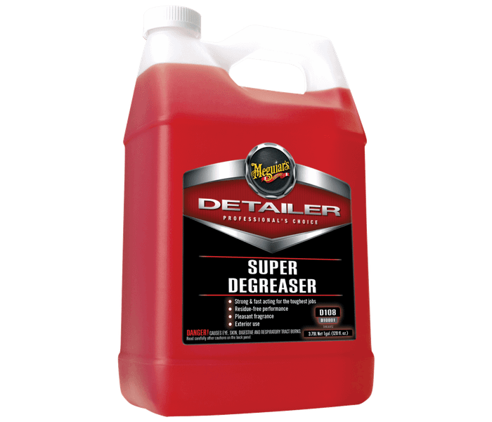 Meguiar's Detailer - Super Degreaser is a powerful formula that quickly breaks down contaminants. It meets VOC standards and California's strict quality standards. The formula contains a high alkalinity so it still works hard to cut through grease and grime. Unlike many cleaning products, Super Degreaser rinses clean without leaving white residue stains.