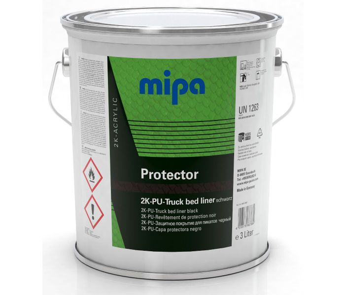 MIPA Protector Bedliner BLACK 3 liter is a scratch resistant 2K coating with non-skid texture in economy packaging that has strong adhesion. This black MIPA Protector is hugely popular as a bedliner coating for your 4x4 car, truck, trailer and more. You can also use this 2K coating to spray other surfaces in a black bedliner paint.