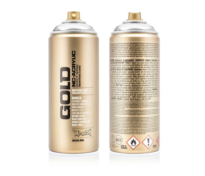 Montana graffiti spray can Silverchrome from the GOLD series is packaged in a low pressure spray. Because the Montana GOLD aerosol can is a low pressure spray, you can spray the graffiti paint very controlled with optimal control over the result. This Montana GOLD Silverchrome M1000 aerosol paint dries silky smooth and fast, even in cold temperatures. Thanks to the special anti-drip formula, you'll avoid sags!