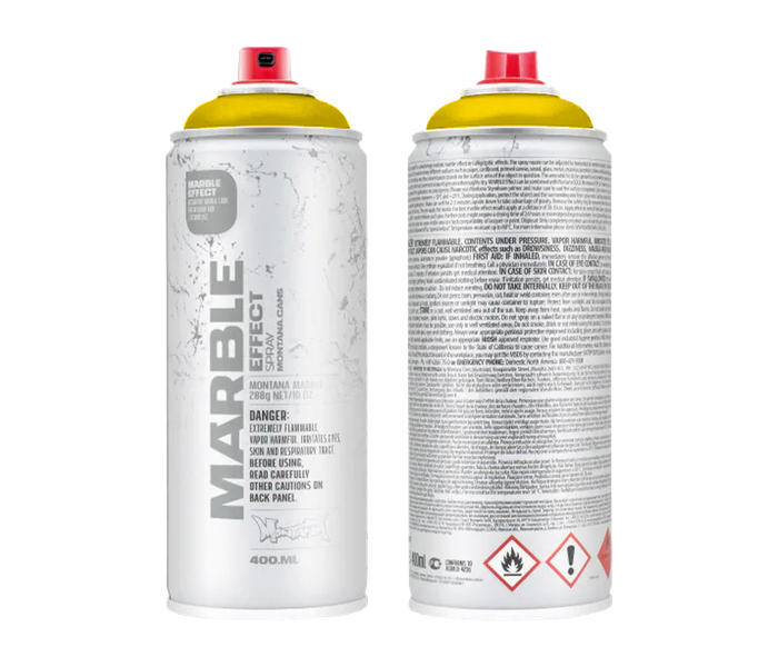 Montana Marble Paint YELLOW spray is a spray paint with the effect of marble stone. This marble look spray paint has a high coverage and adheres to stone, ceramic, metal, glass, wood, plastic, cardboard, paper, acrylic paint and more. With Montana Marble paint spray can you can give the most diverse objects a marble effect. Ideal for the most unique creations as a DIYer indoors and outdoors.