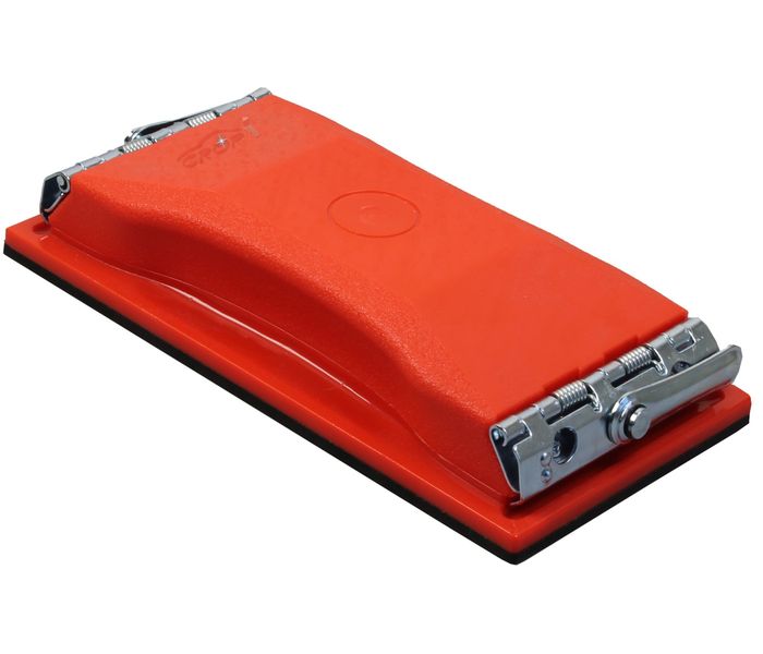 This orange/red Hand Sanding Block can be used for wet sanding and dry sanding. This sanding block is provided with a 210x110mm abrasive surface and an ergonomic grip.