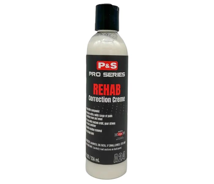 P&S Rehab Correction Creme is een veelzijdige all in one polish die een breed scala aan correctiemogelijkheden biedt. Het werkt uitzonderlijk goed met alle soorten polijstschijven. Deze crème polijstmiddel is ideaal voor het verwijderen van lakimperfecties, schuurkrassen en swirls. Dankzij de gebruiksvriendelijke formule en eenvoudige verwijdering bespaart Rehab tijd terwijl het verbluffende resultaten oplevert.