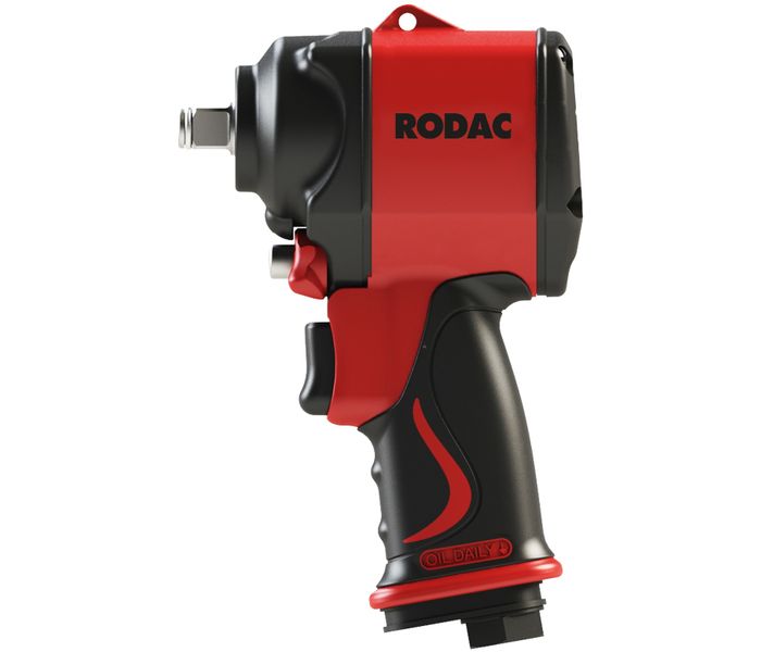 RODAC RC2690 impact wrench 3/8" Stubby - Twin Hammer is a short extra strong and powerful impact wrench that is versatile. This professional pneumatic impact wrench is only 122mm wide.